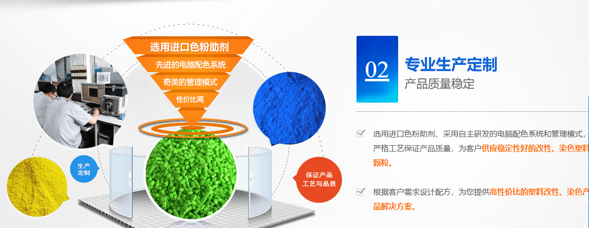 公司具有完善的質量管控系統,采用奇美集團自主研發的先進電腦配色系統,配色速度快,批次色差小、顏色穩定,易于生產加工,為客戶降低生產成本;根據客戶不同需求,提供一對一的定制化服務,現場提供技術支持,為客戶解決問題,所做產品均滿足Rohs、REACH等歐盟對有害物質管控的要求,滿足出口要求,滿足歐盟食品接觸級ABS可為客戶提供各種檢測報告。公司通過了ISO9001質量管理體系、ISO14001環境管理體系和ISO45001職業健康安全體系,全球回收標準GRS認證。