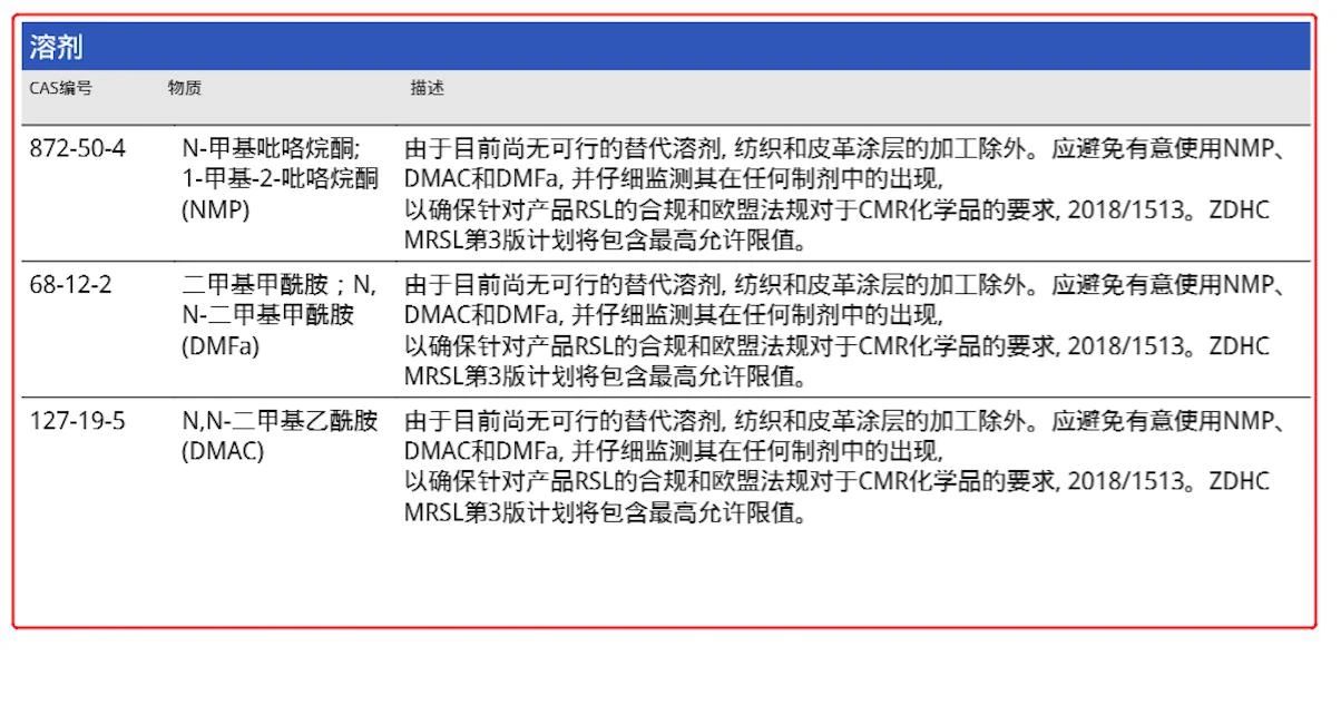 1.REACH,CAS化學品代碼,根據MSDS成分,不能有REACH法規限用物質;比如,DMF;2.GRS附錄A,不能有附錄A限用化學品,3.ZDHC/LEVEL1,2,3,符合基本級別level1,(有ZDHC授權合作機構的檢測報告都可以,比如,ITSSGS中紡聯BV英柏)